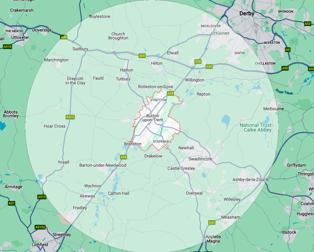 Most of the surrounding villages including Alrewas, Barton, Hilton